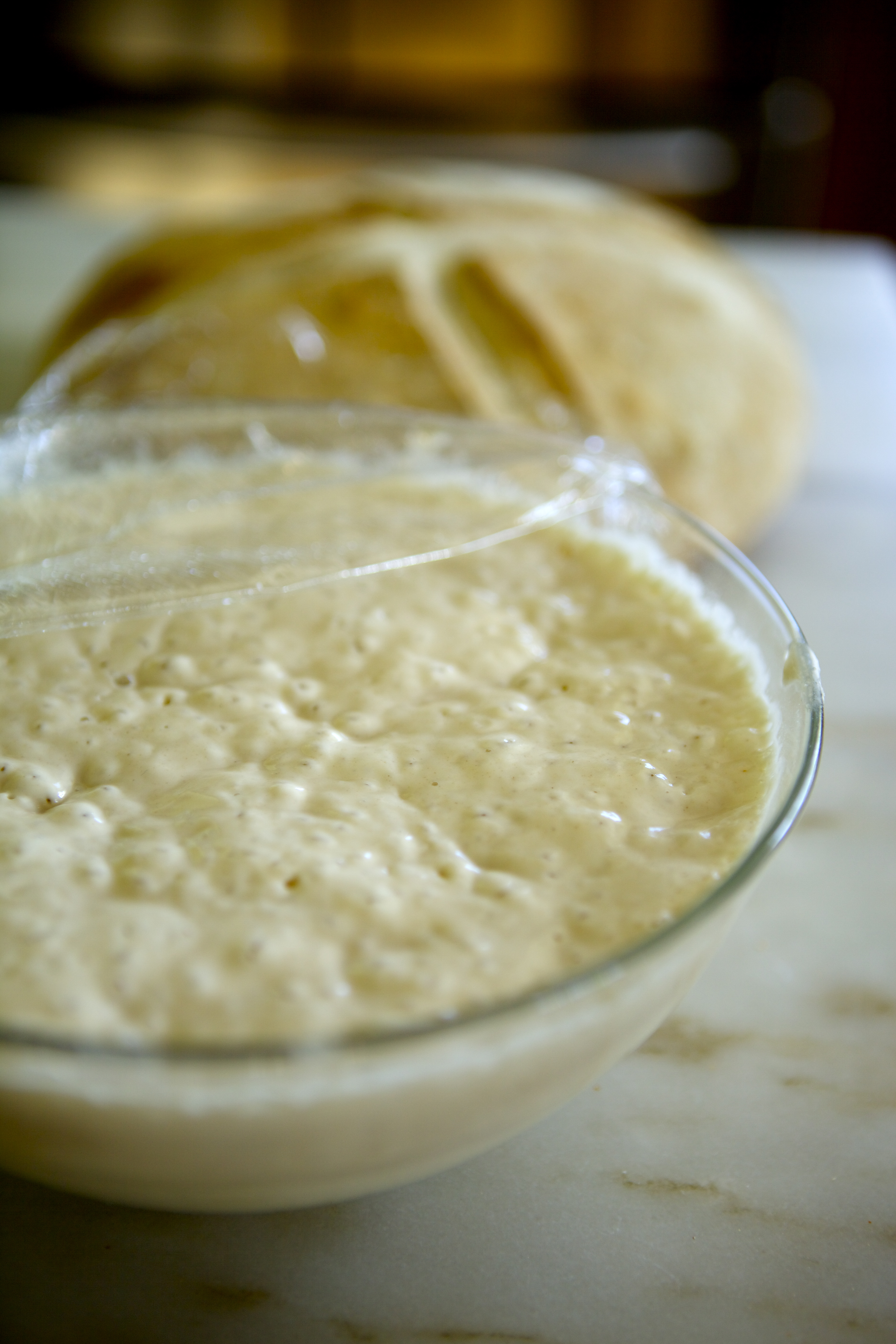 If you leave it in the fridge: Remove the beast from the fridge and set it on the counter out of direct sunlight at least 24 hours before you plan to make bread. Once per month and every time you make bread (more on this in the sourdough loaf post) you will need to feed the beast by adding a half a cup of flour.