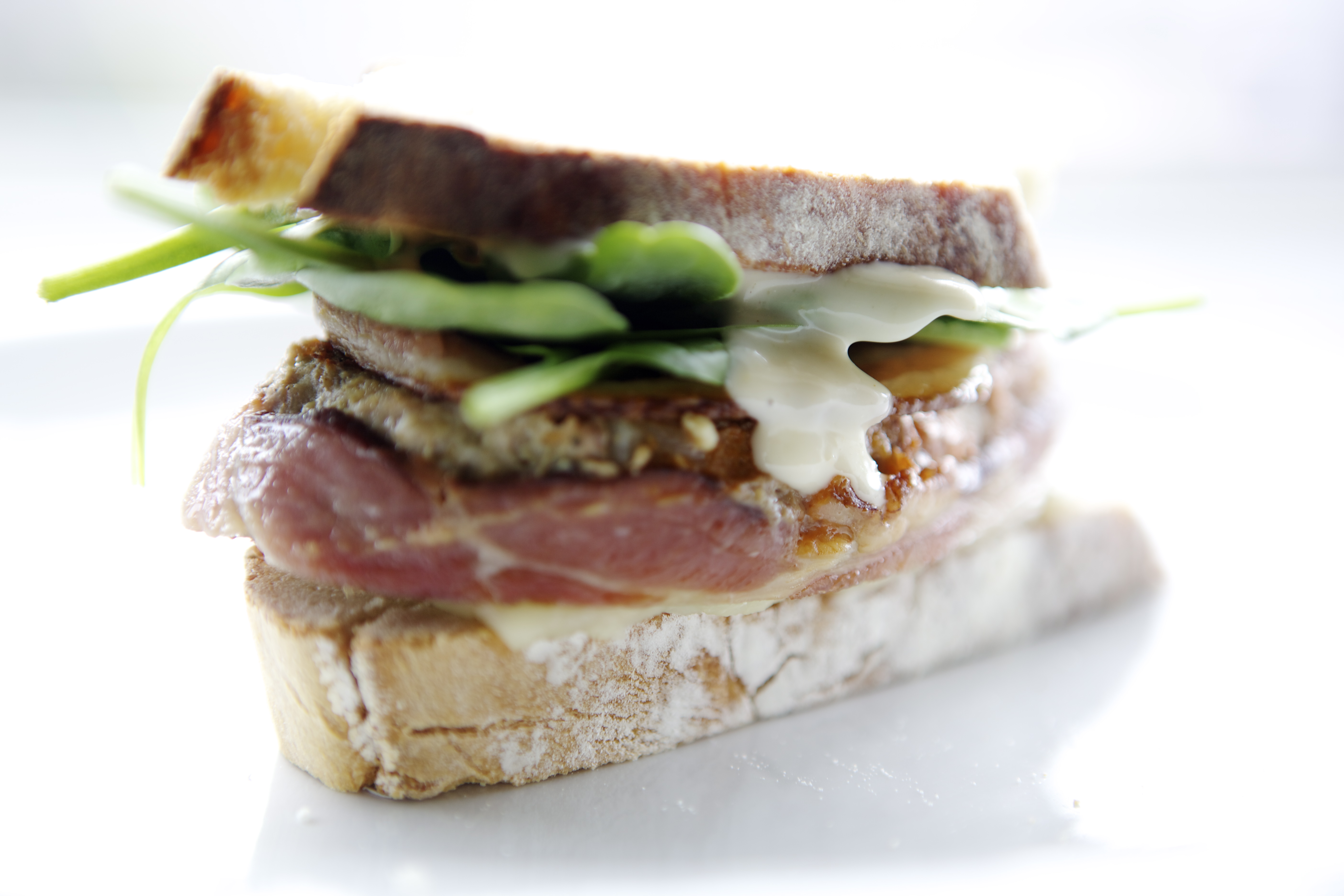 Last night we ate reheated lasagne and while I thought I pulled out the spinach lasagne I had made, it turned out to be the cheese lasagne which was supposed to be a side and not a main course. This brings into specific relief what happens when you break you own rules. The rule is always write on the tin foil what it is you are putting in the freezer. Lesson learned (again). So since I have no recipe for you, I present a picture of today’s lunch: left over bacon wrapped meatloaf on home made sourdough with spinach and Captain Toady’s Hardy Horseradish Sauce.